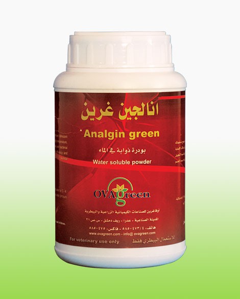 أنالجين غرين مستحضر خافض للحرارة ورافع للمناعة ينصح بإستعماله في حالات الإجهاد والحرارة الشديدة وبعد عمليات التحصين وفي حالات الإصابة بالجراثيم المعدية والفيروسية حيث يساعد على تحسين الإنتاج وزيادة نسبة التحويل وتسهيل امتصاص العناصر الغذائية وينشط عملية الاستقلاب وبناء أنسجة الجسم عند الدواجن والمجترات.