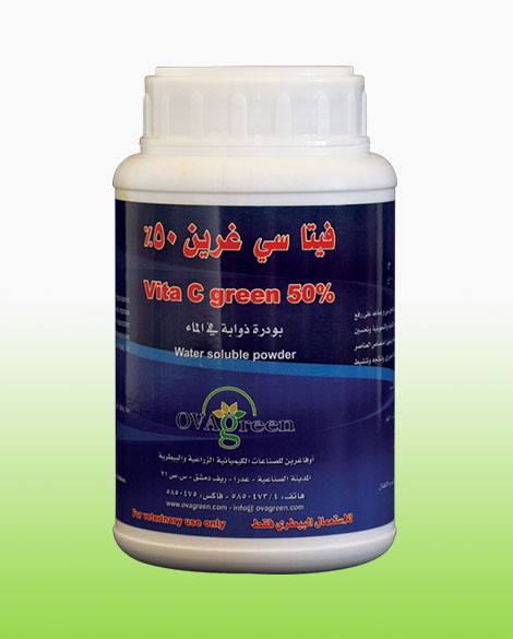 فيتا سي غرين 50% للوقاية والعلاج من نقص فيتامين سي ويساعد على رفع مقاومة الجسم للأمـراض ويزيد من كفاءة الجسم المناعية والتحويلية وتحسين انتاج و نوعية البيض و اللحم و مقاومة الإجهاد وعوامله وتسهيل امتصاص العناصر الغذائية وزيادة معدلات النمو والتغلب على الإنهاك الحراري ونتائجه وتنشيط الجسم عند الدواجـن والمجتـرات والخيـول.