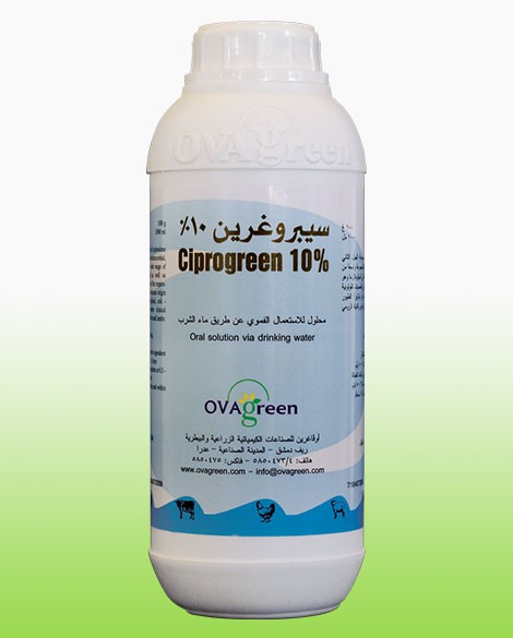الاستطباب: سيبروغرين10 % مضاد حيوي صنعي من مجموعة الجيل الثانـي لمركبـات الكينولون الواسعة الطيف وتأثيرها قاتل لمجموعة واسعة من الجراثيم الموجبة الغرام والسالبة الغـرام بالإضافة الى الميكوبلازما وهو يستعمل لعـلاج الأمراض الرئوية والرشح المزمـن والعصيات القولونية والتسممية والسالمونيلا والكوريزا والتهاب السـرة وكوليرا الطيـور والباسـتوريلا والنـزلات المعويـة والاسـهالات فـي الدواجـن والديـك الرومـي والعجـول والحمـلان.